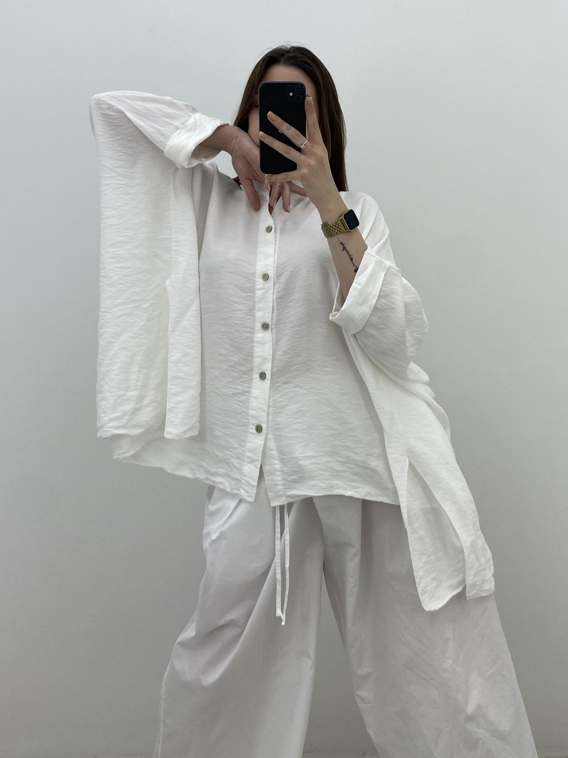 BLUSA AMPLIA, CON CIDA, CORTES A LOS LADOS.