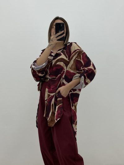 BLUSA ESTAMPADA CON CAIDA, CORTES LATERALES, TALLA AMPLIA.