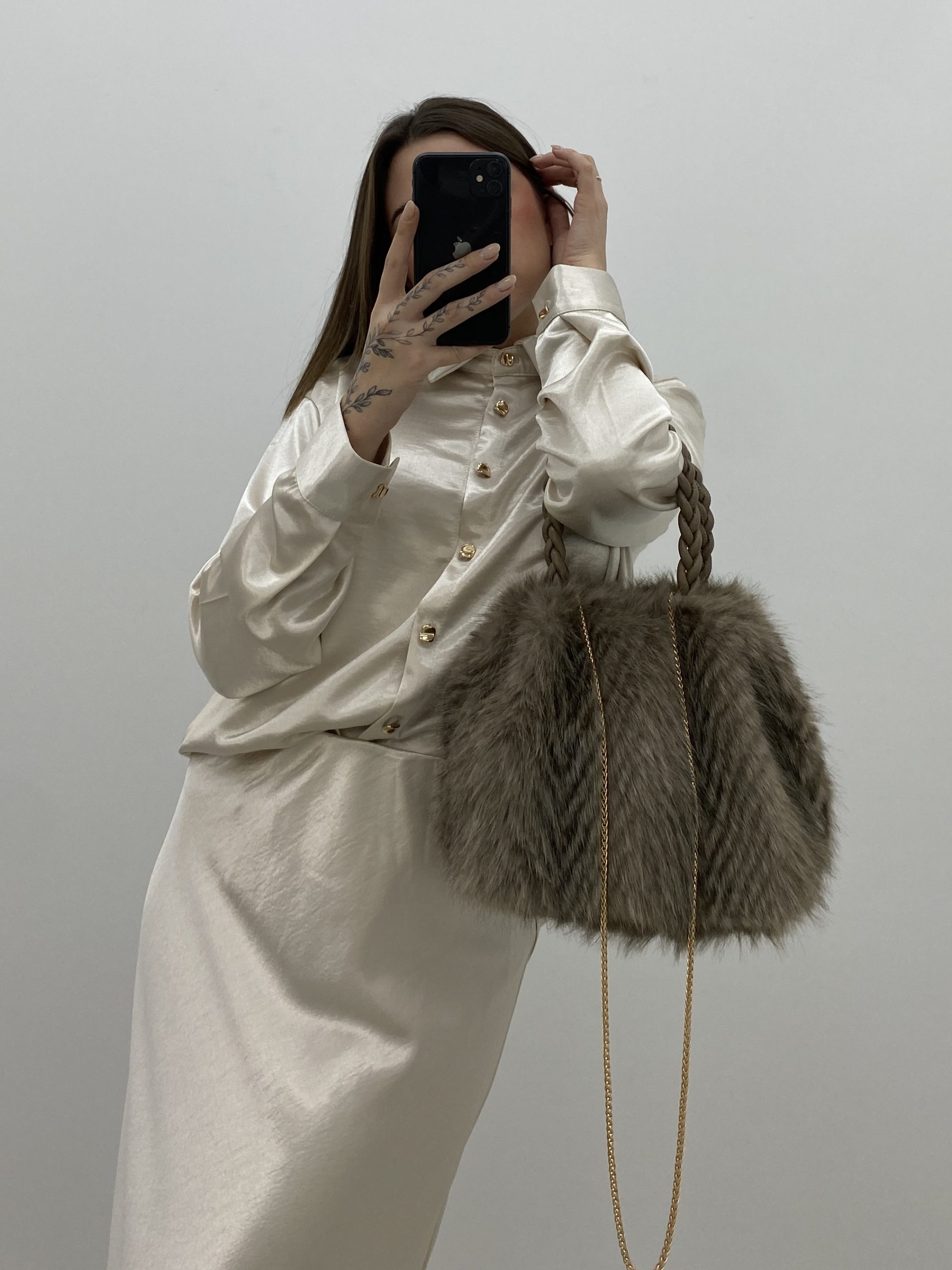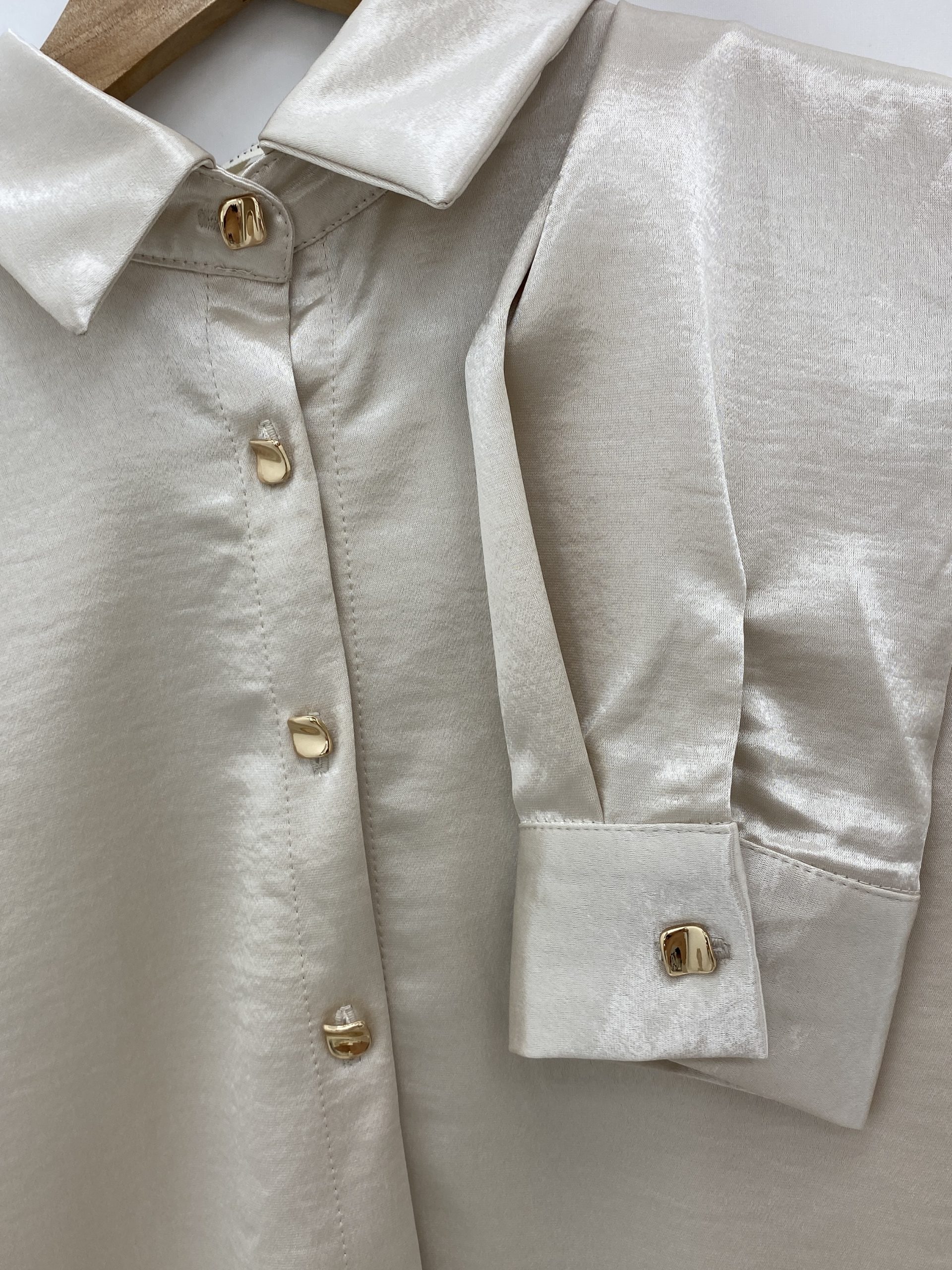 BLUSA DE SATÉN, ABOTONADA CON CAÍDA.