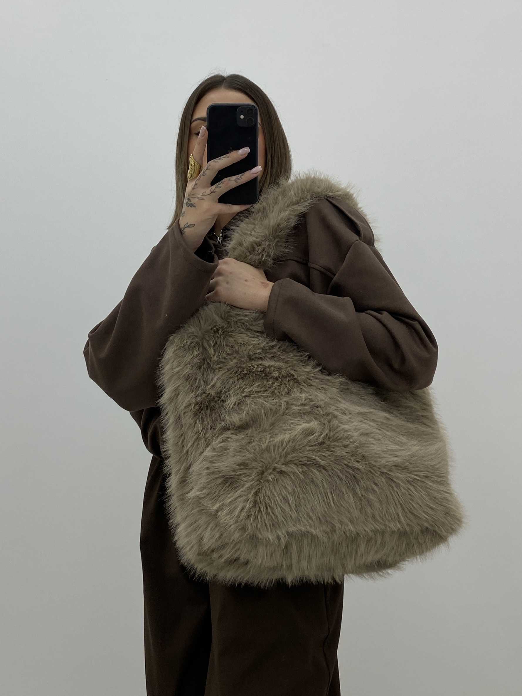 BOLSO DE PELO, CON CREMALLERA Y POLIPIEL, FORRADO EN SU INTERIOR.