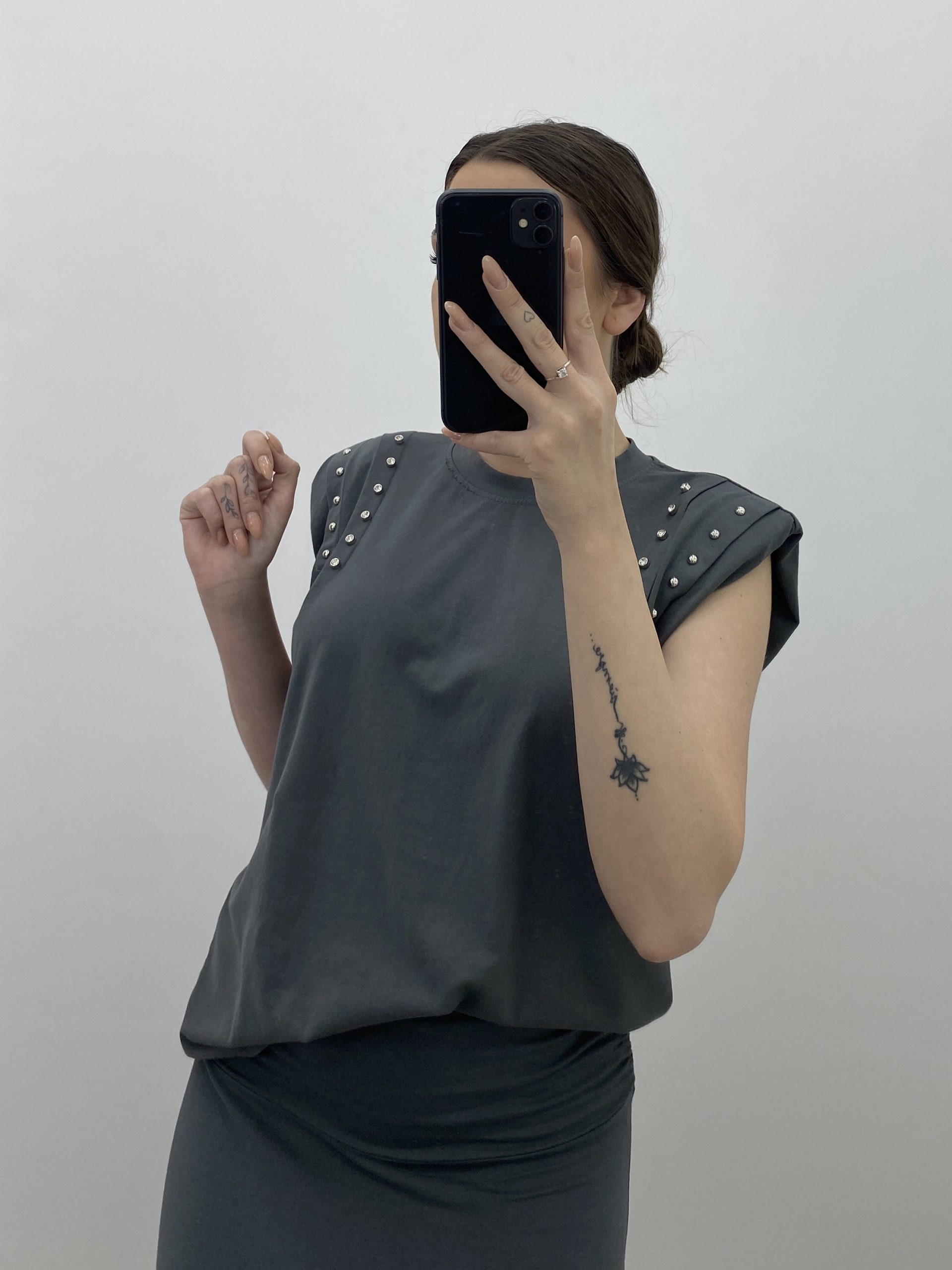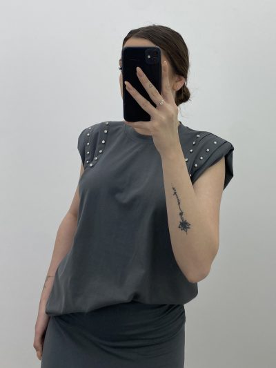 CAMISETA DE ALGODÓN, CON DETALLES DE REMACHES Y HOMBRERAS.