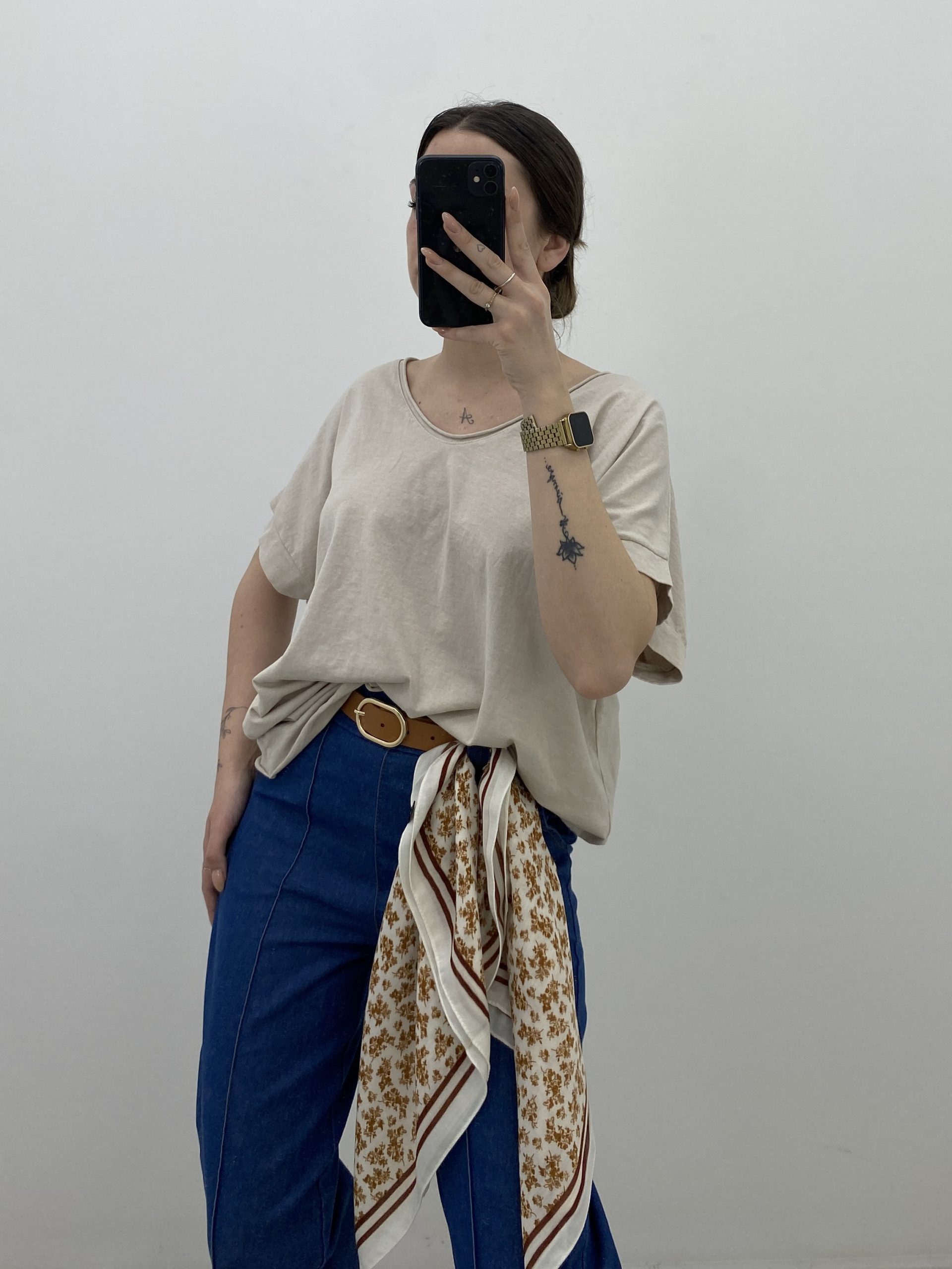 CAMISETA BÁSICA, CUELLO PICO Y AMPLIA.