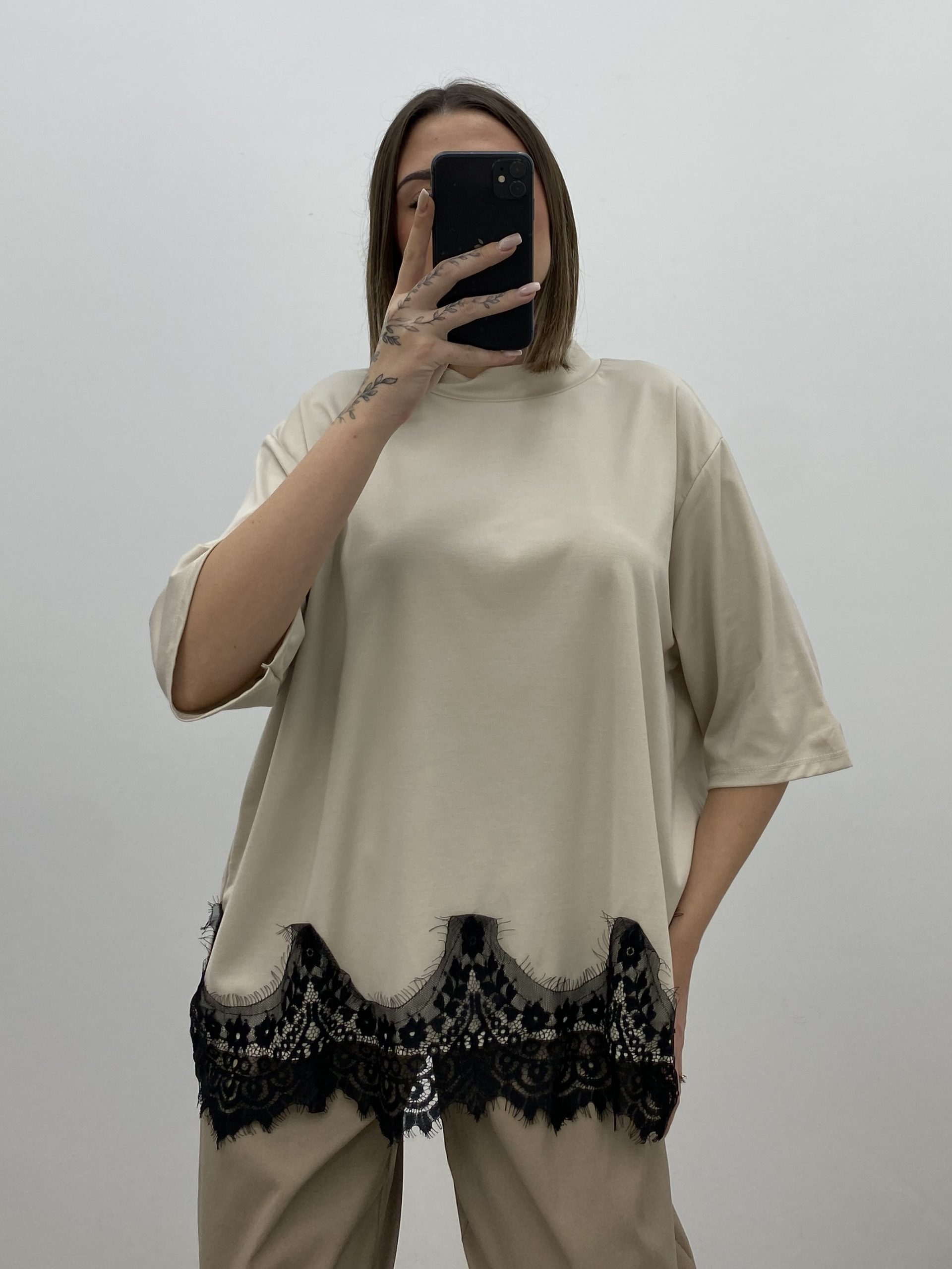 CAMISETA CON DETALLE DE PUNTILLA ANCHA BAJO.
