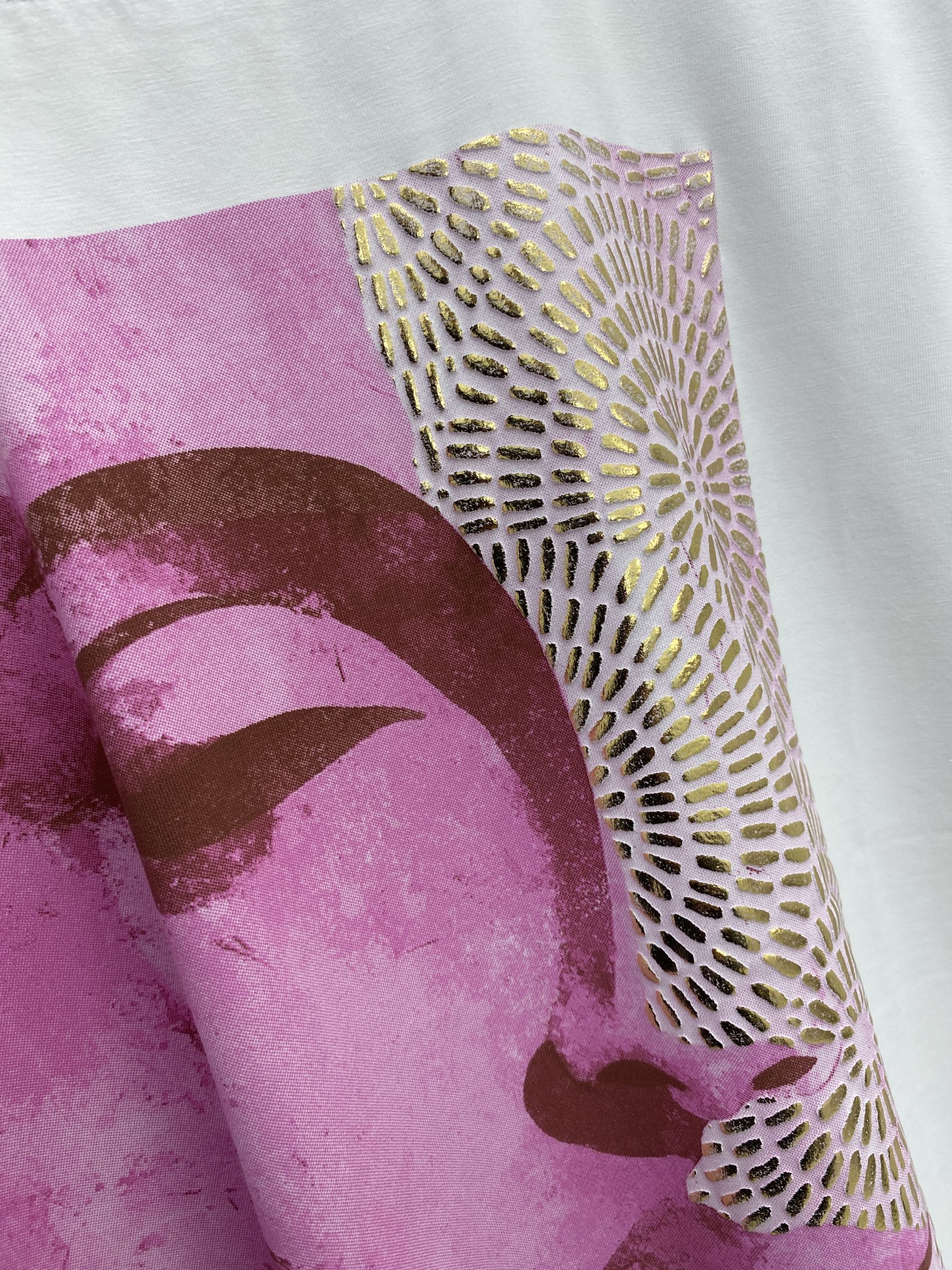 CAMISETA BÁSICA, CON SERIGRAFÍA DETALLE DORADO EN RELIEVE.