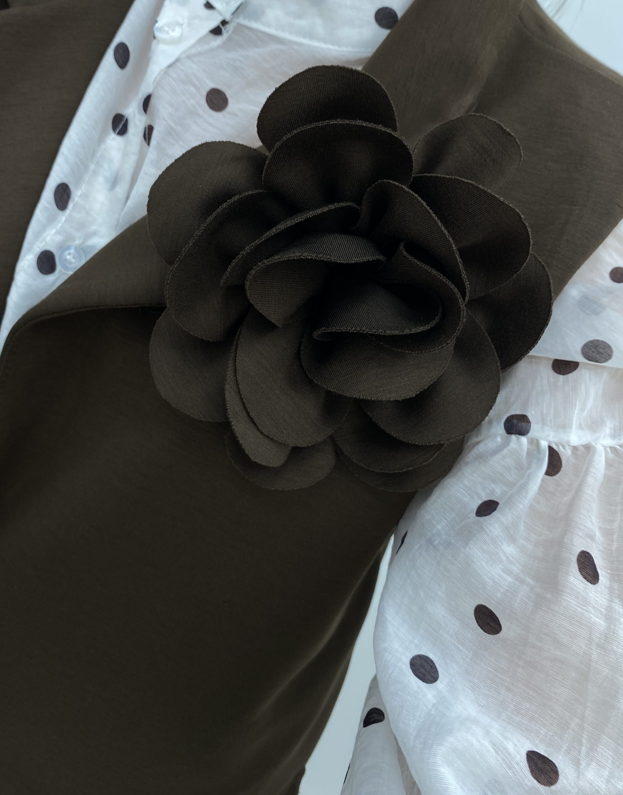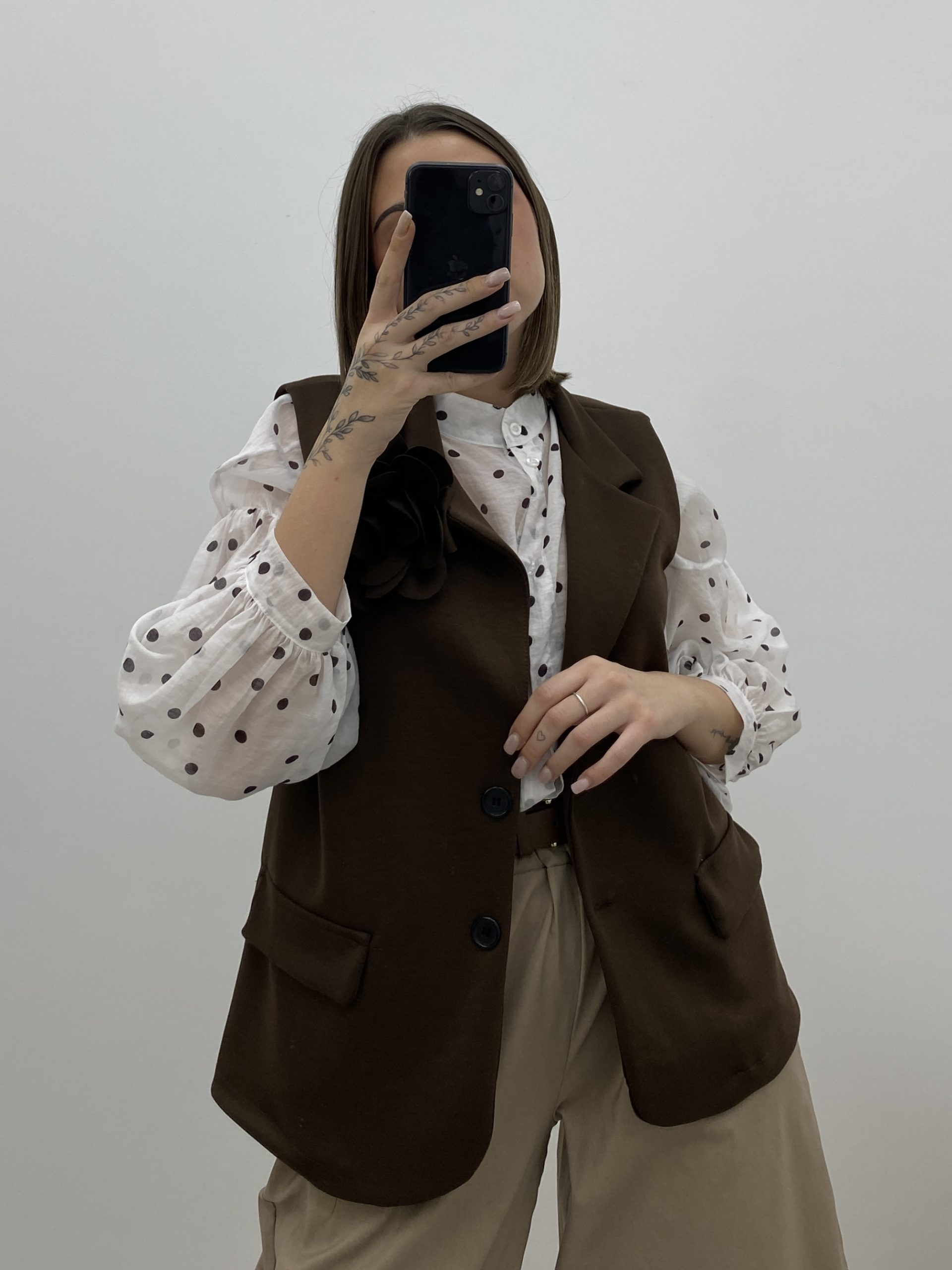 CHALECO PUNTO ROMA, CON DETALLE BROCHE FLOR.
