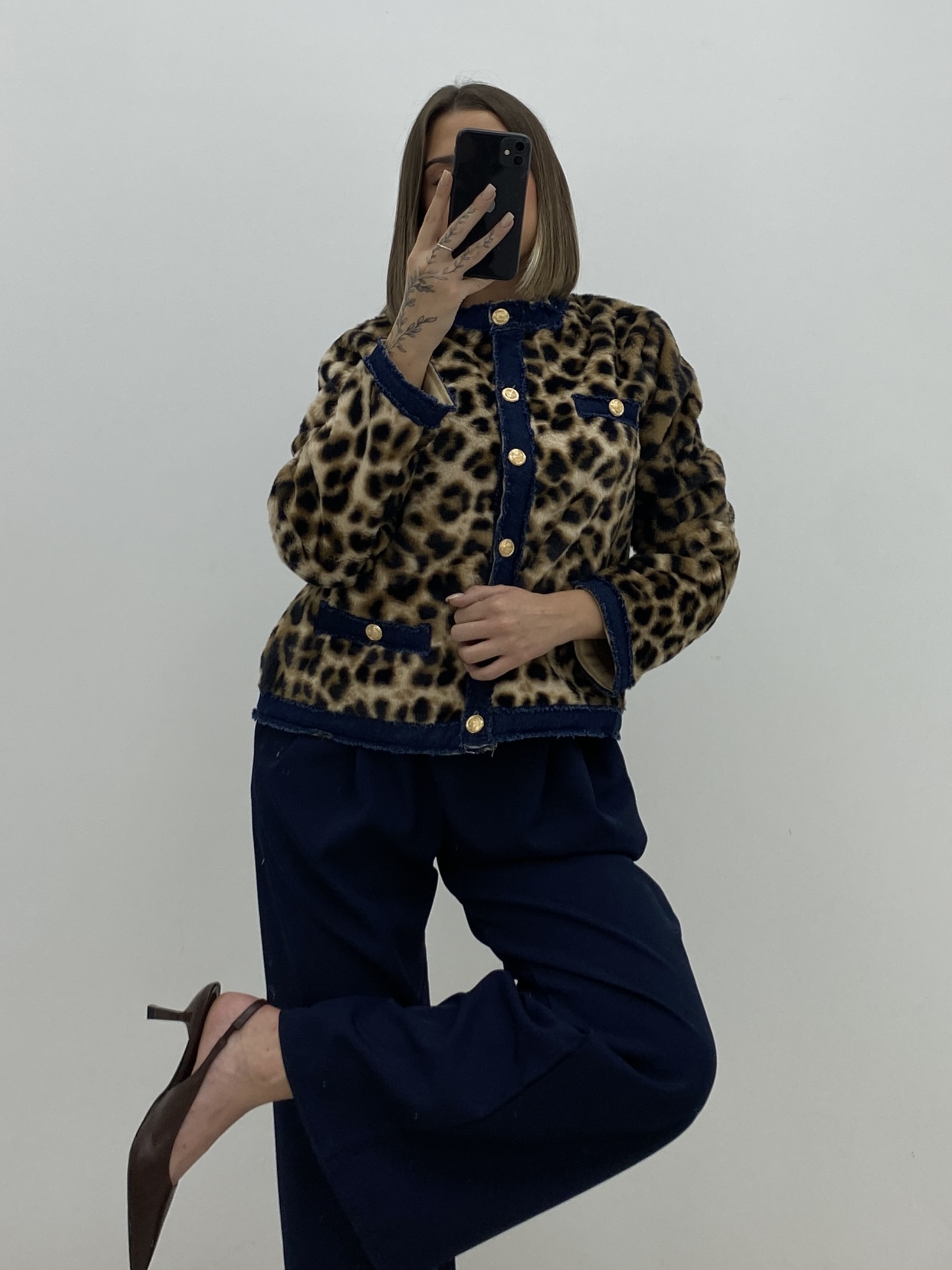 CHAQUETA DE PELO SUAVECITO, TODA FORRADA, COMBINADA CON DENIM.