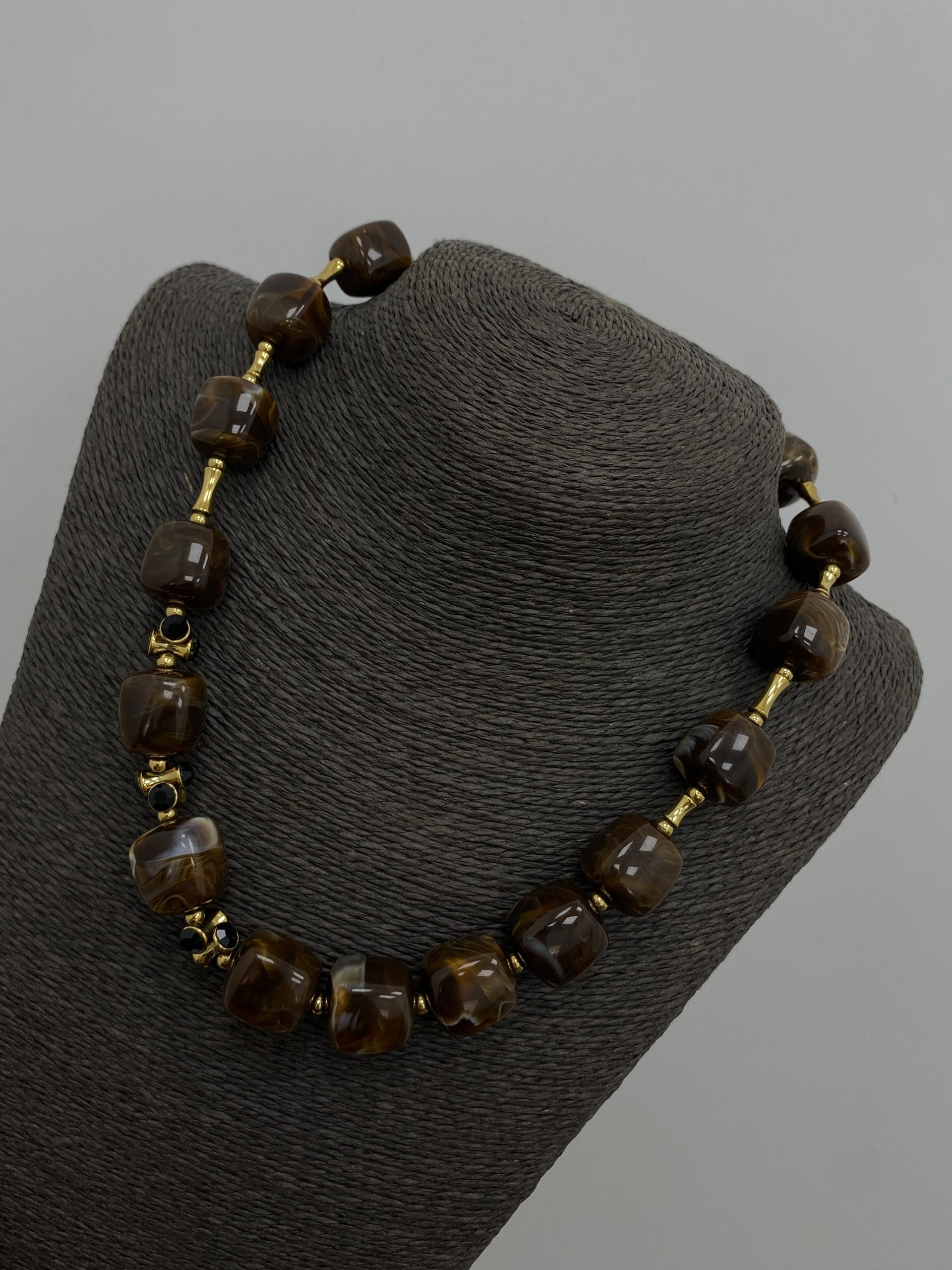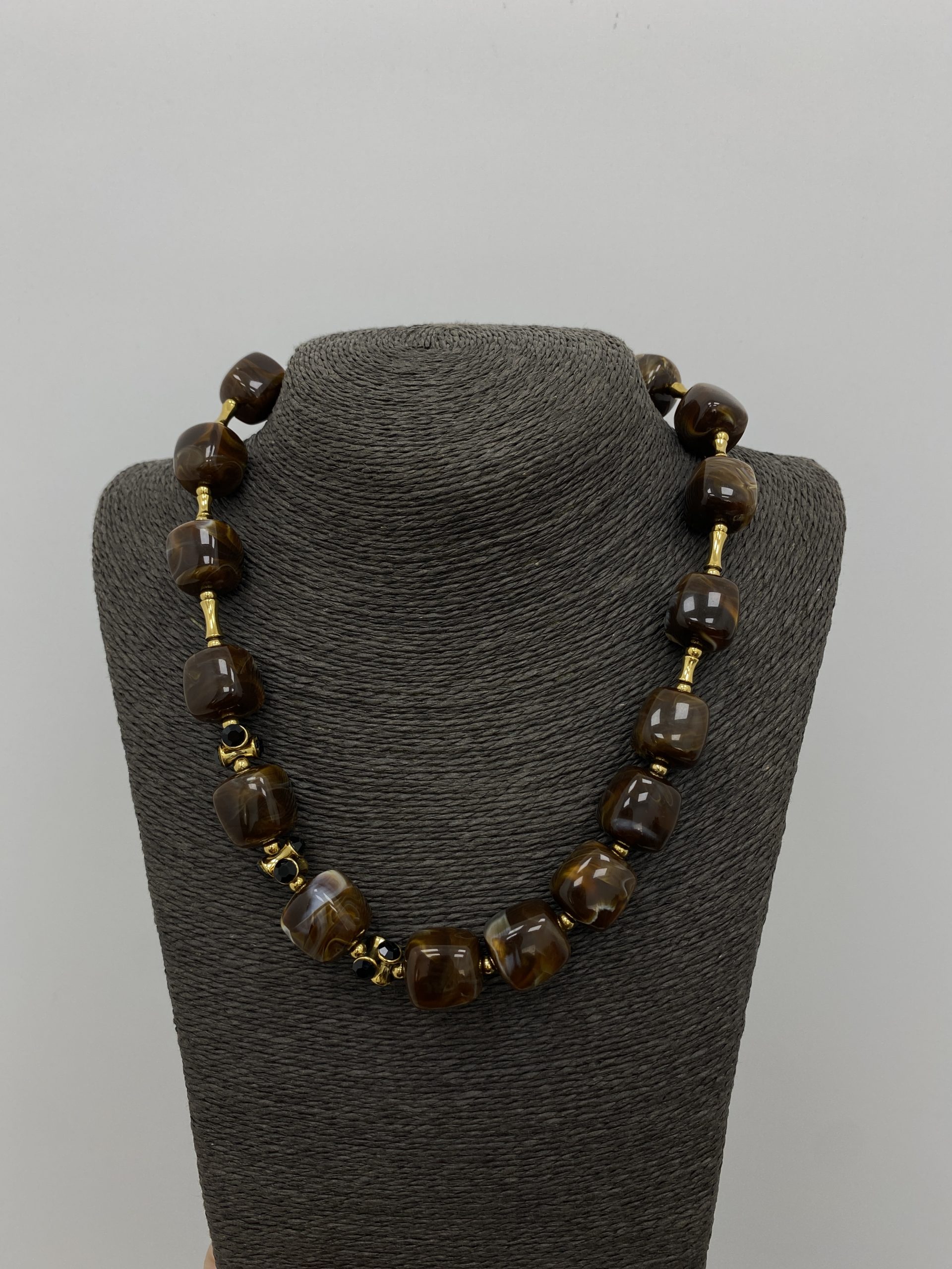 COLLAR DE ACERO, CON DETALLES EN FORMA DADO ACRÍLICO.