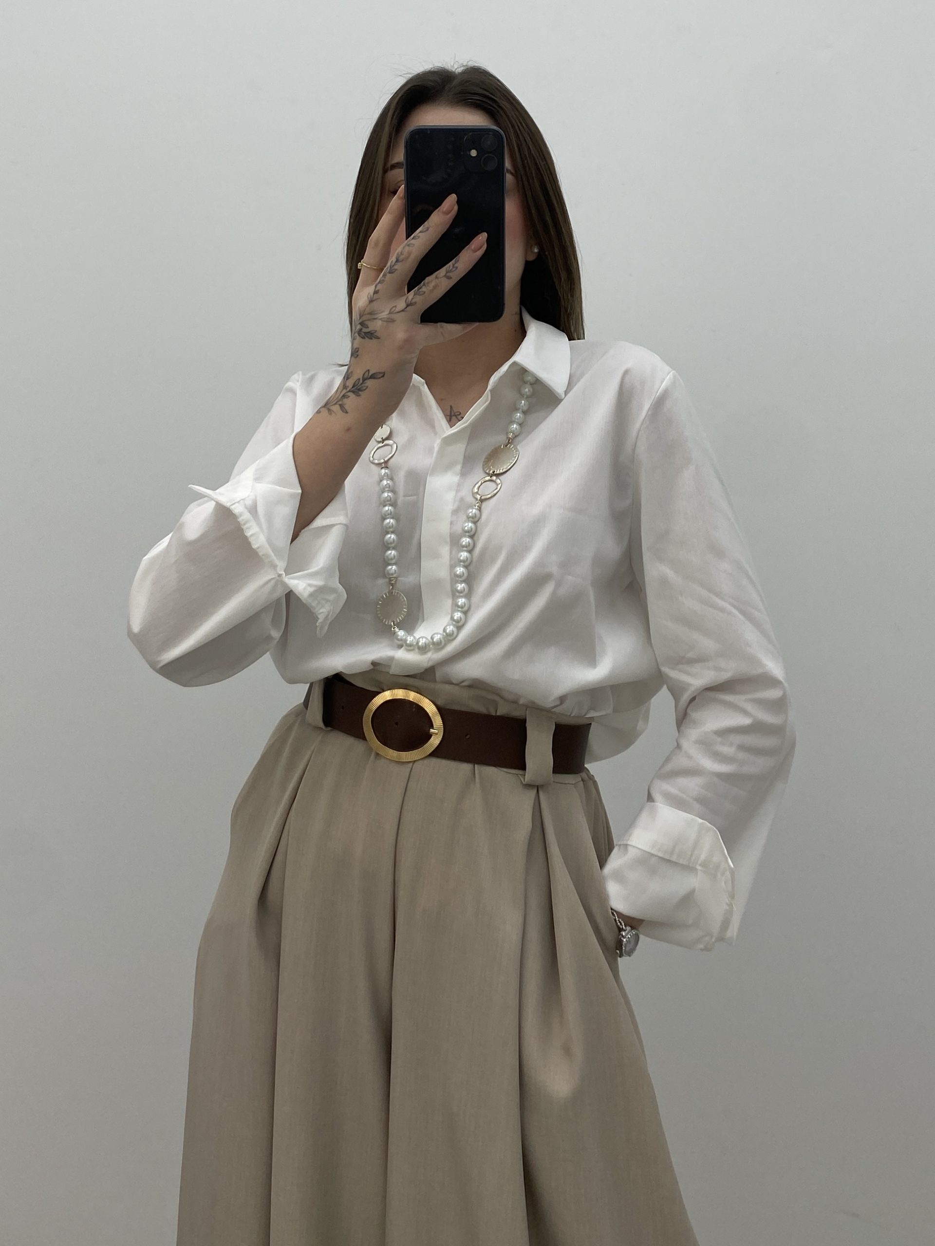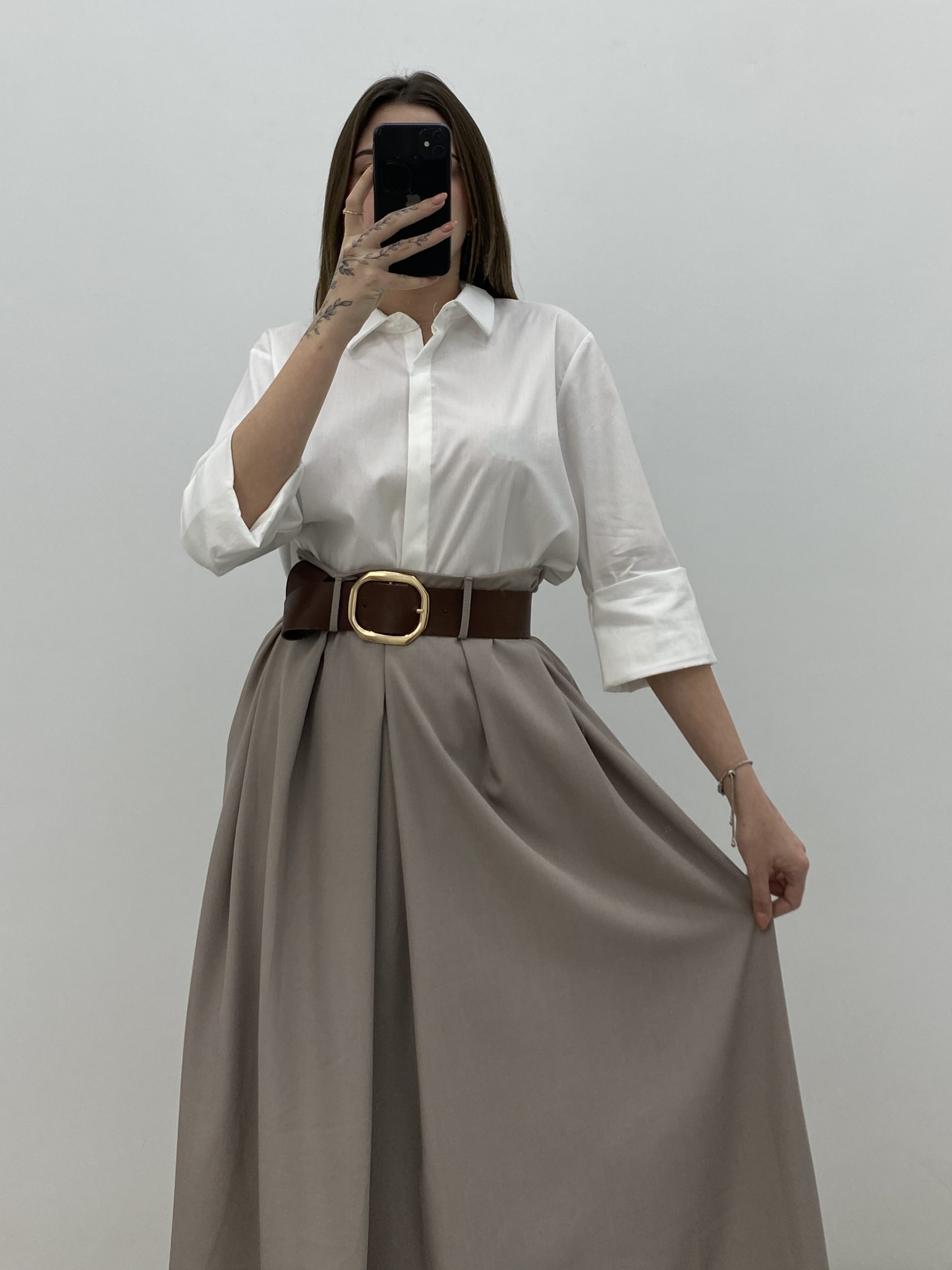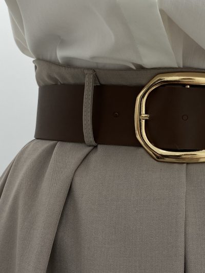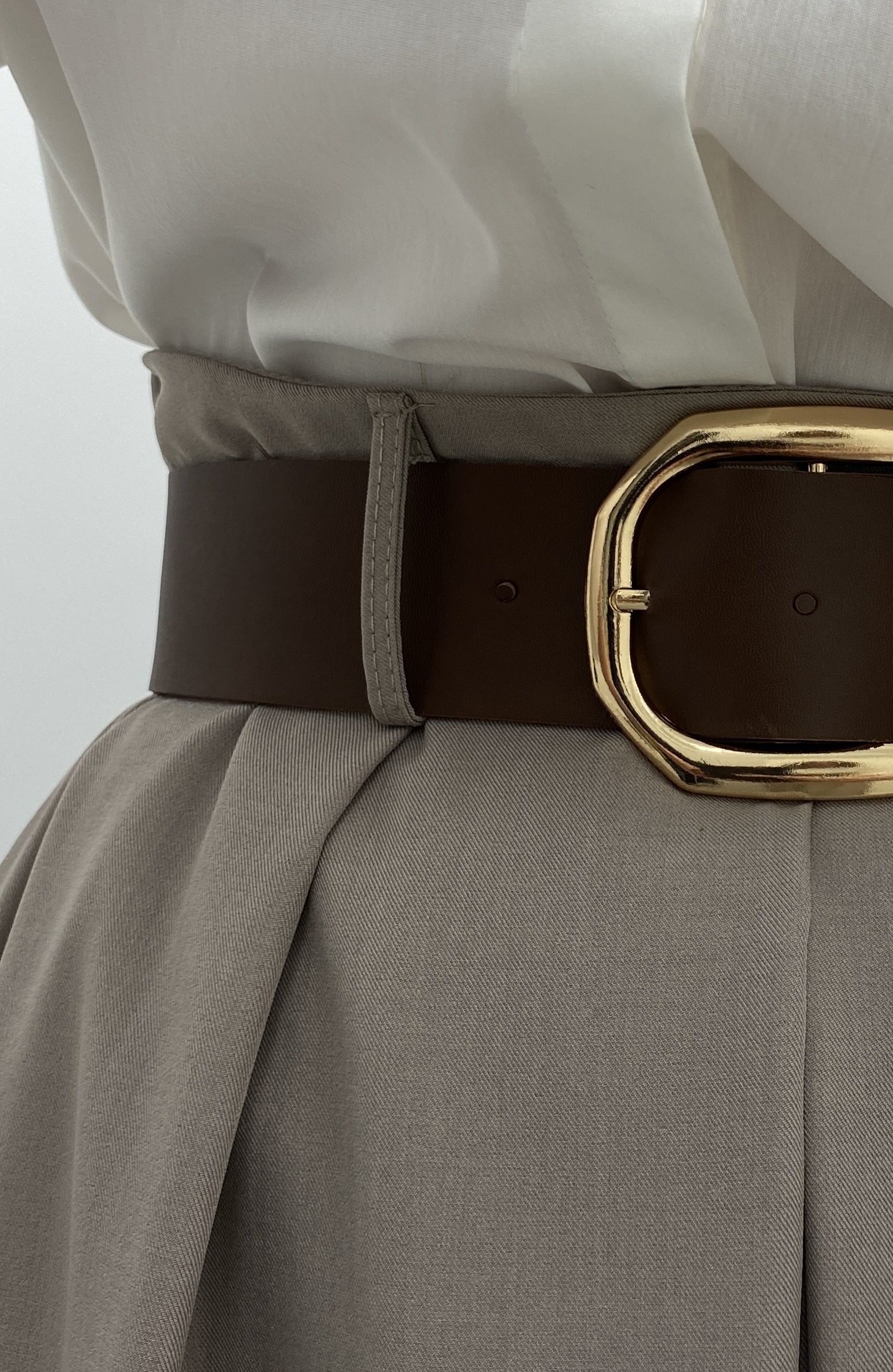 FALDA DE TALLE ALTO Y PINZAS, CON BOLSILLO Y CINTURÓN CON MUCHA CAÍDA, ES UN CLÁSICO EN NUESTROS ARMARIOS.
