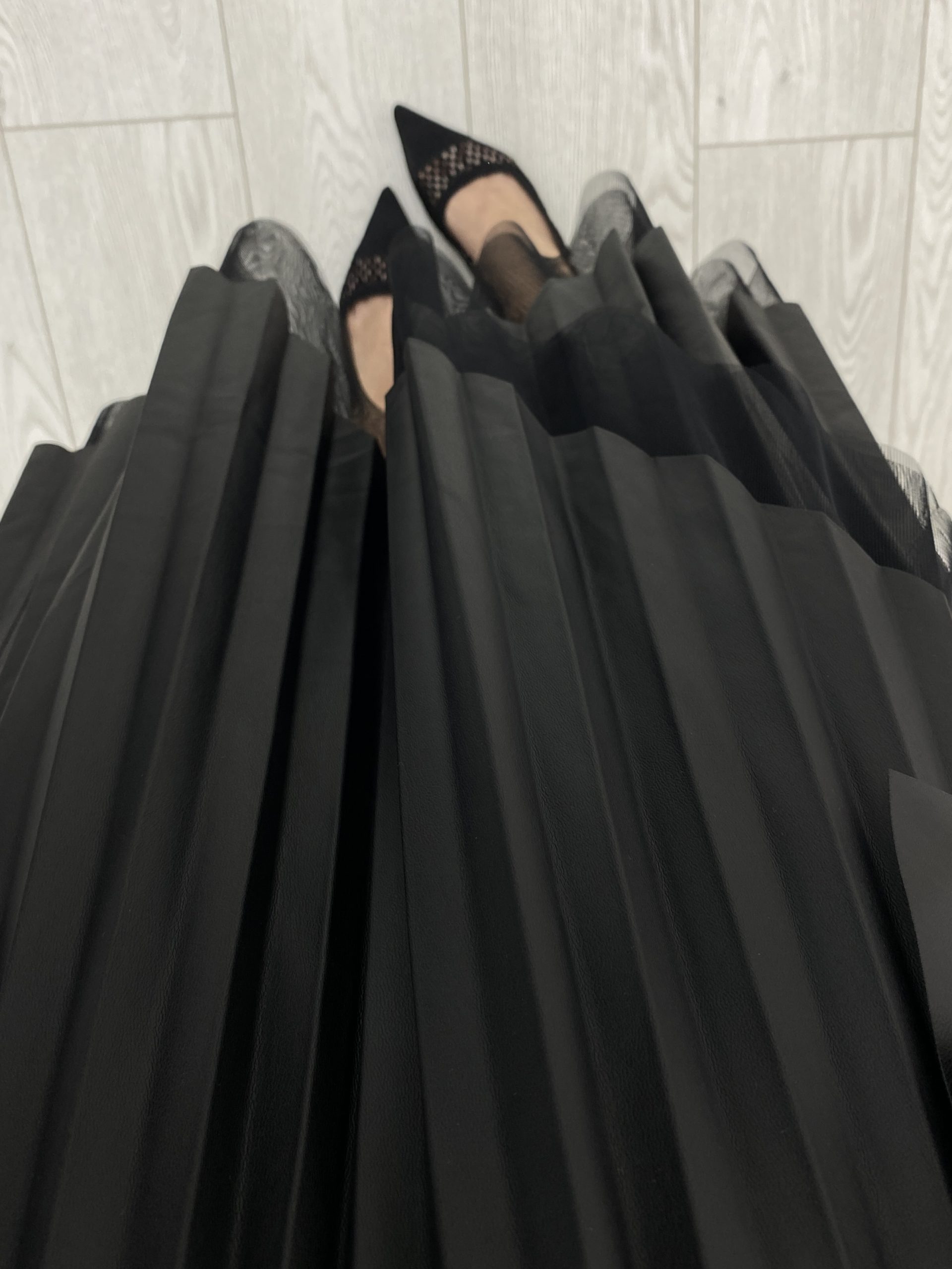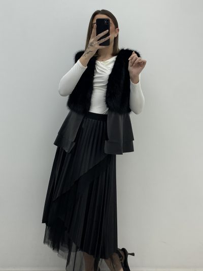 FALDA DE POLIPIEL Y TUL, PLISADA Y DESECTRUTURADA.