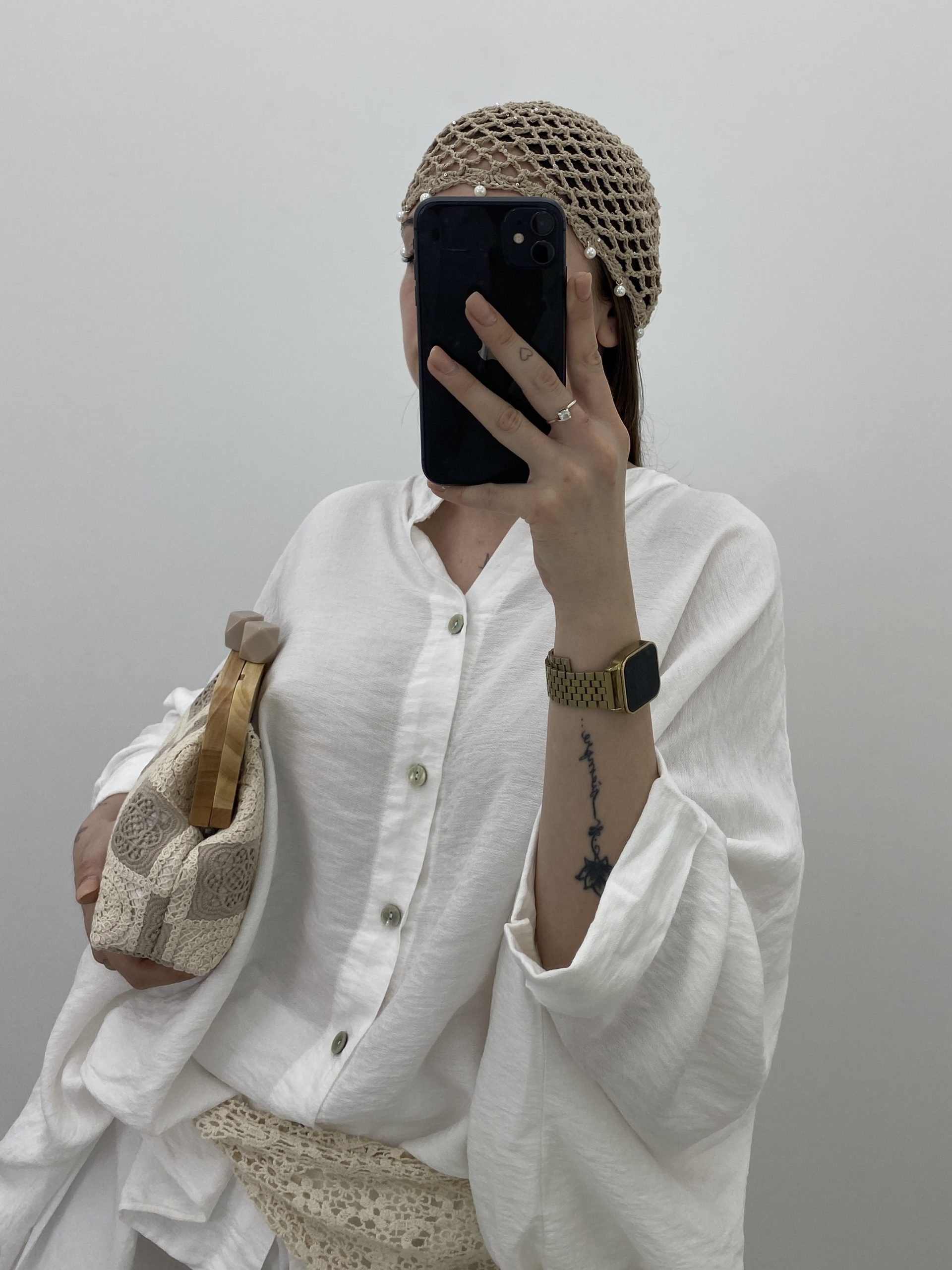 GORRO EFECTO GANCHITO, CON DETALLE DE PERLAS.