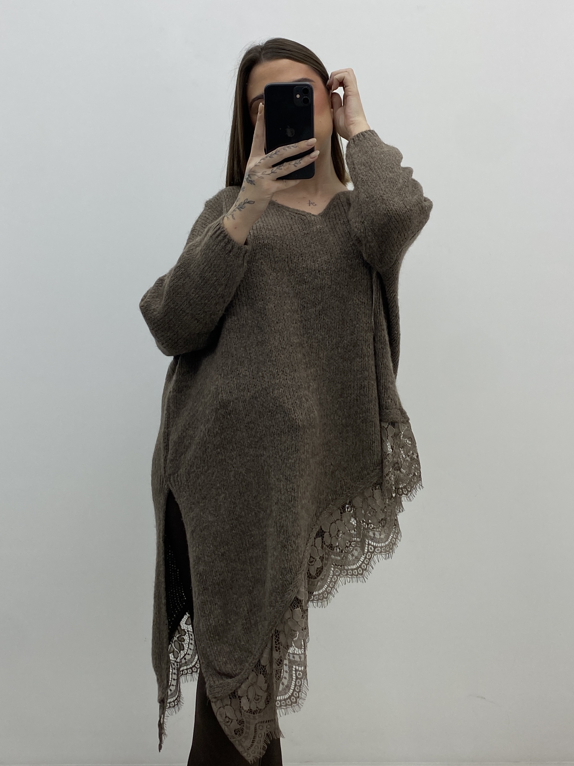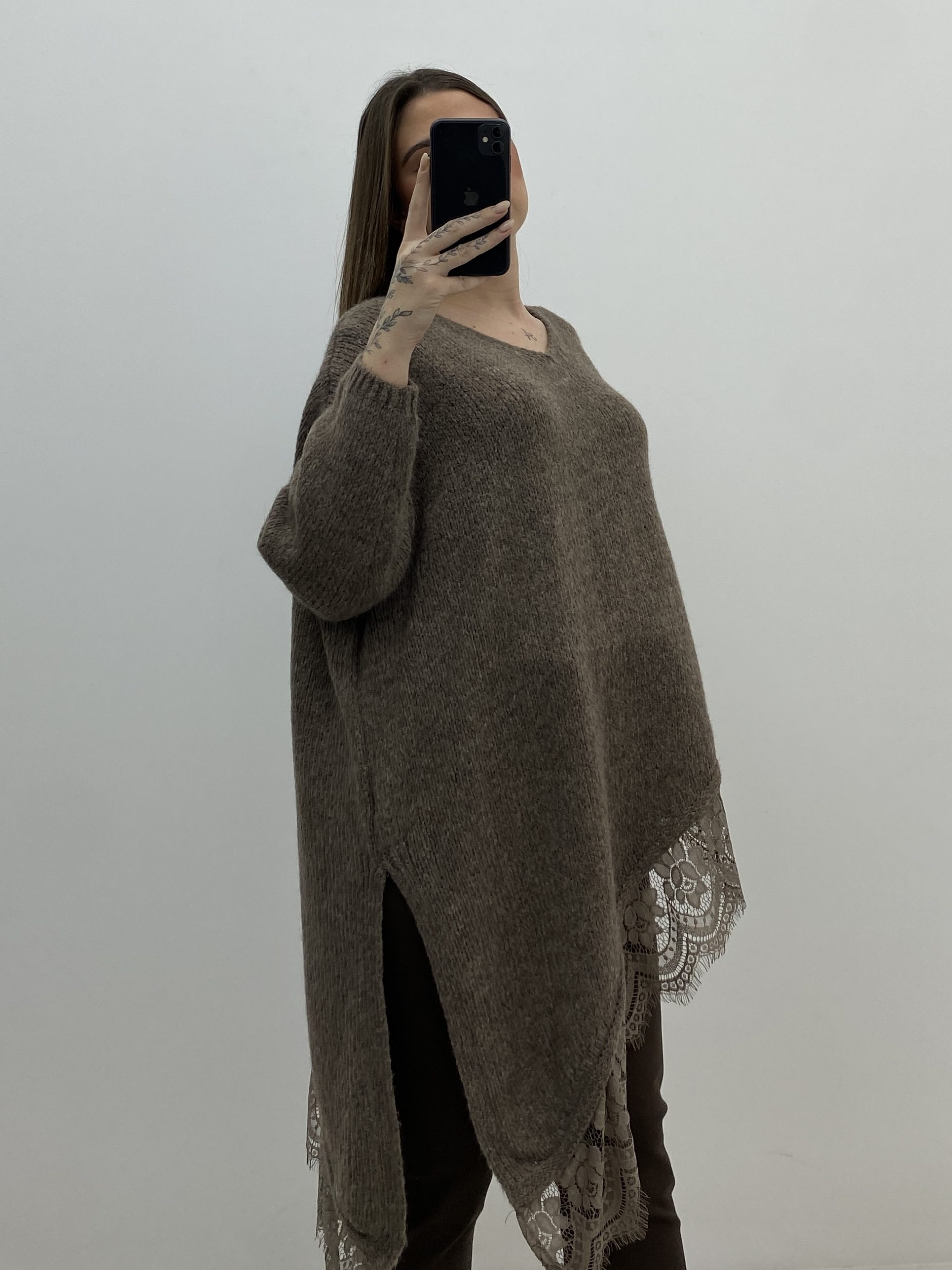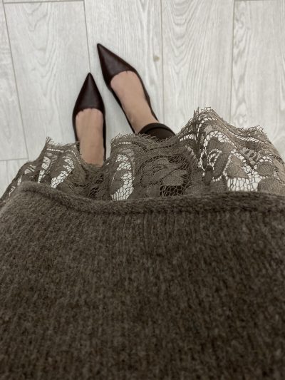 JERSEY DE PUNTO, DESECTRUTURADO, CON DETALLE DE PUNTILLA.
