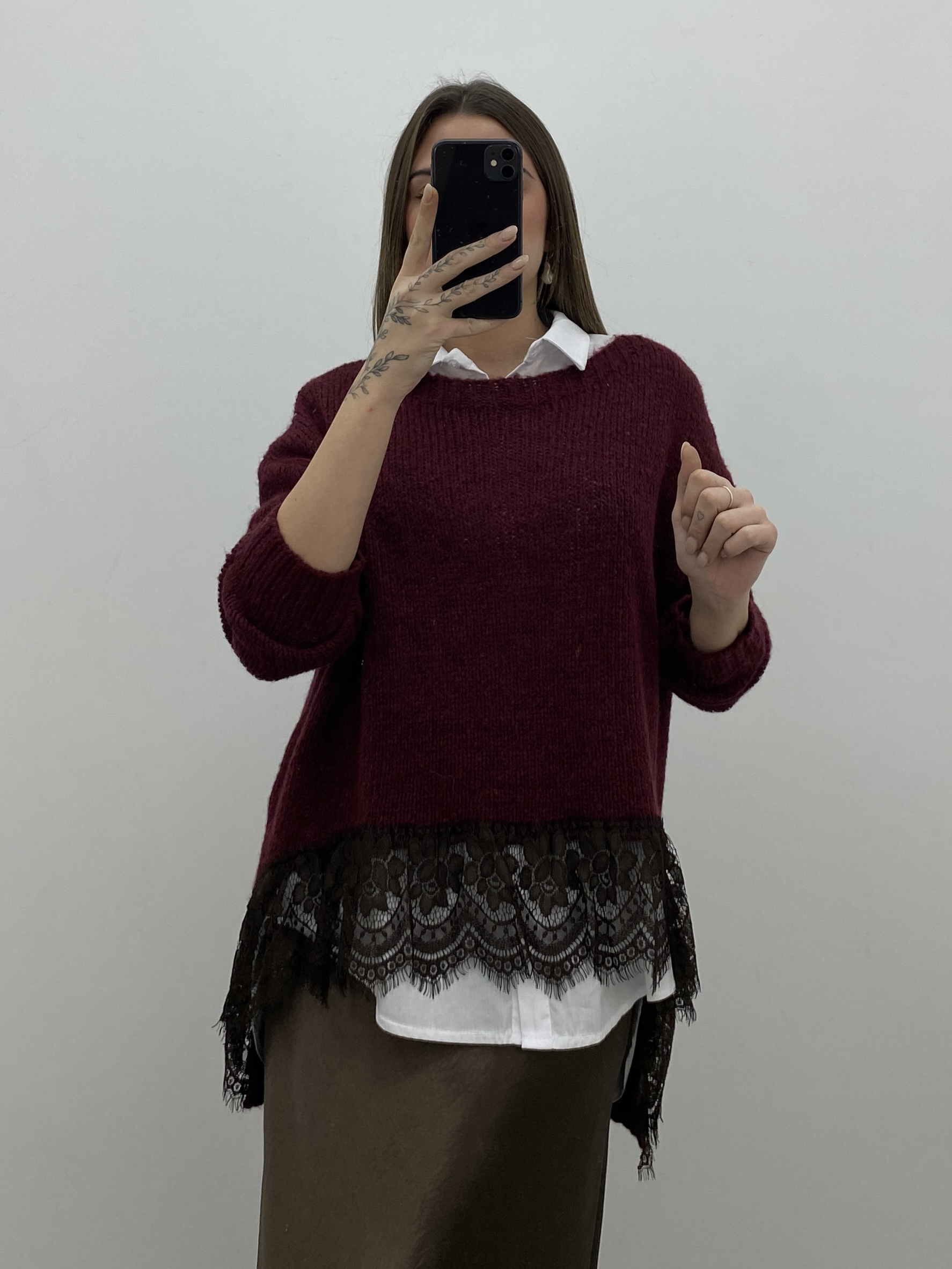 JERSEY DE PUNTO, DESECTRUTURADO, CON DETALLE DE PUNTILLA.