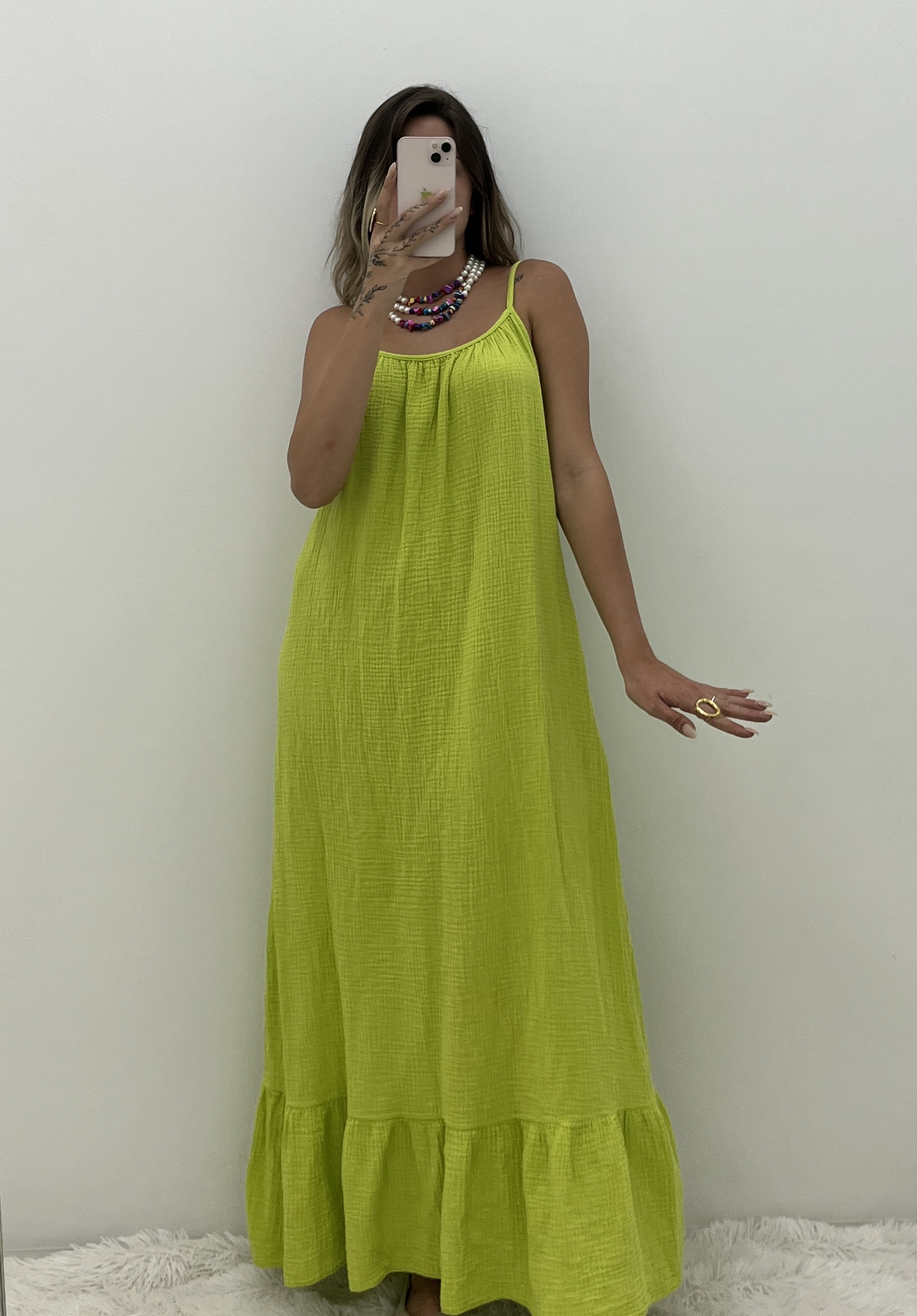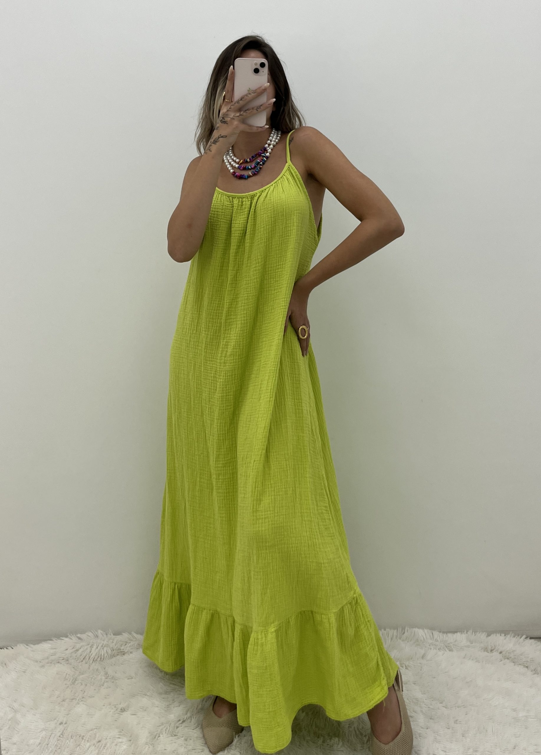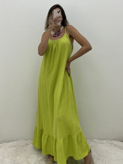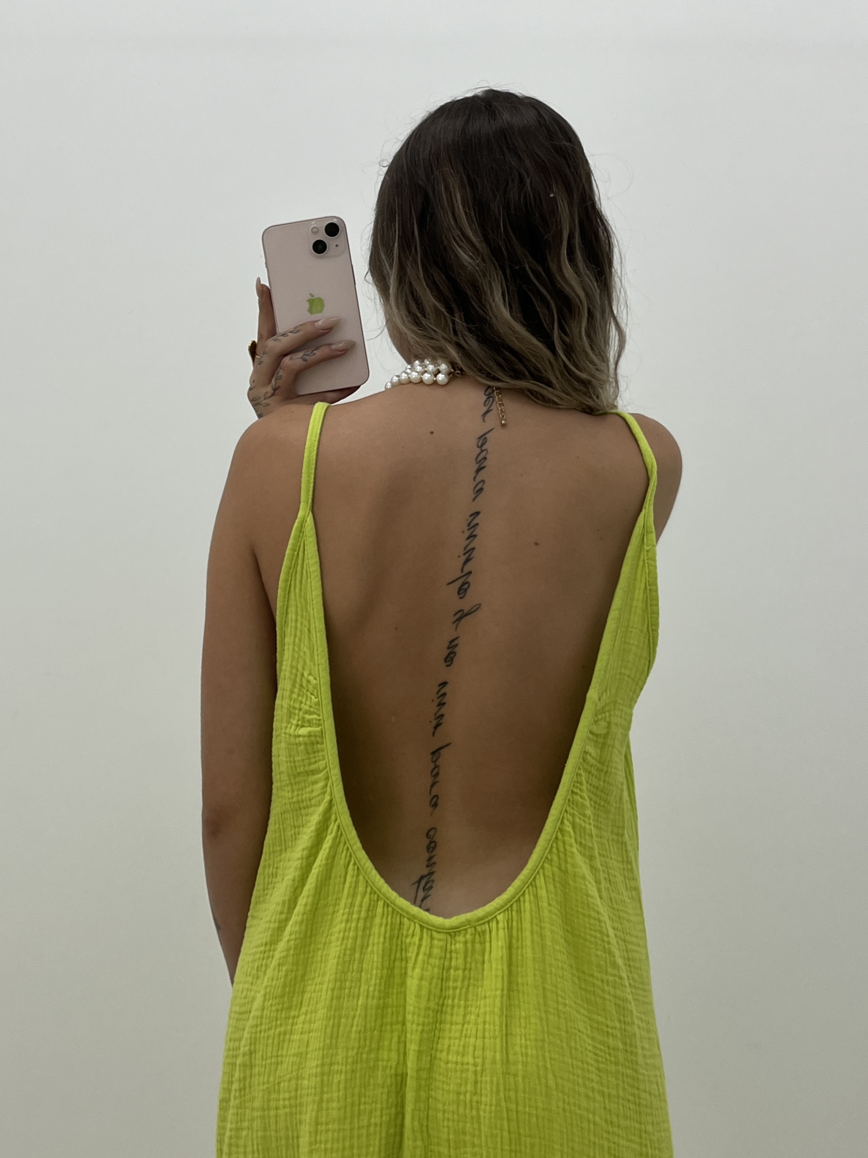 VESTIDO CON ESPALDA DESCUBIERTA, 100% ALGODÓN, CONTORNO DE PECHO 120CM, CADERA 140CM, LARGO 133CM